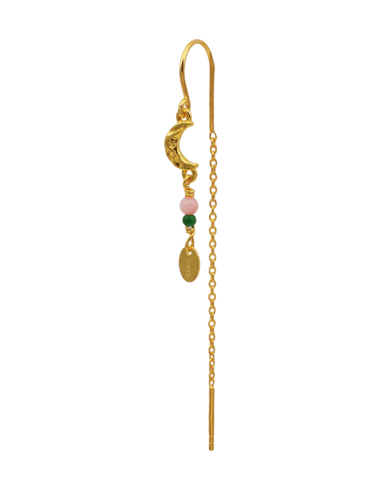 Ørebøjle med kæde. Månevedhæng, grøn onyx og bambuskoral. 18 karat forgyldt sterling sølv.
