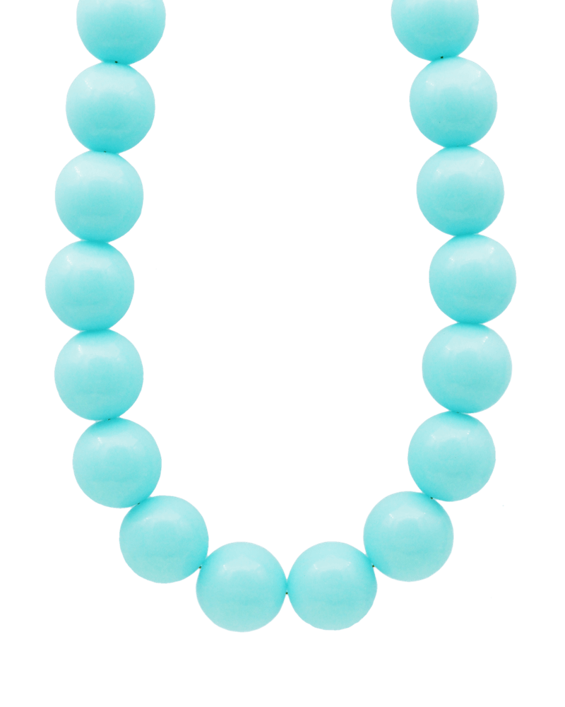 Halskæde af store, lækre, lyseblå akrylperler. Halskæden er dejlig let og kan bæres dagen lang. Justerbar længde.
