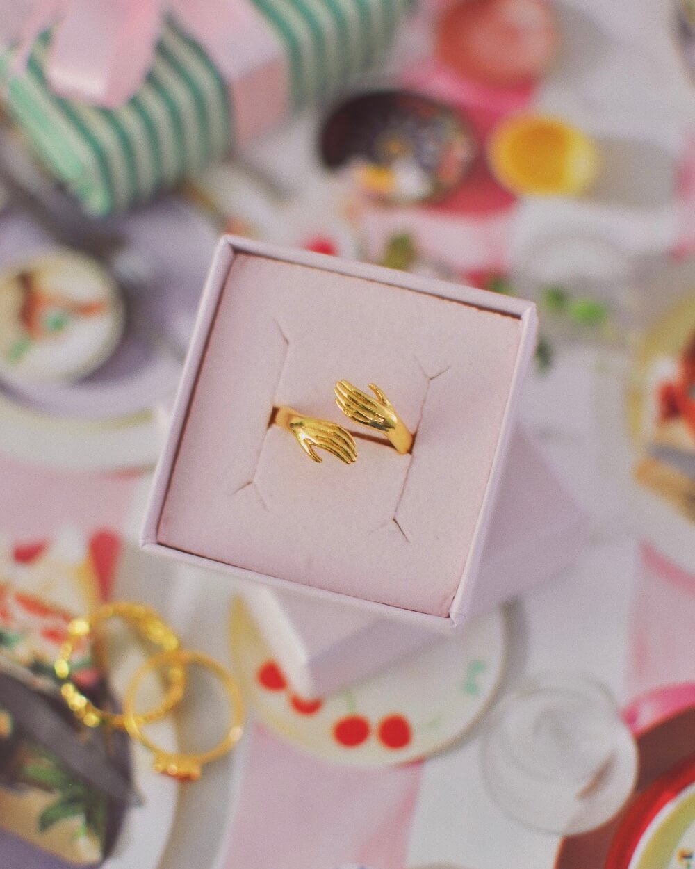Lad denne fine ring omslutte din finger, som et lille kærligt kram. Ringen er justerbar og kan udvides til præcis den størrelse du ønsker. Ringen er i 24 karat forgyldt sterling sølv og belagt en afsluttende coating, der gør den ekstra slidstærk og modstandsdygtig overfor vand.