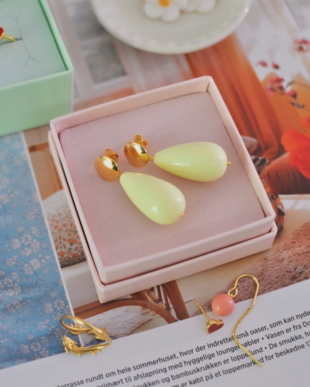 Ørestik med stor lysegul akrylperle. Dejlig let og kan bæres dagen lang.