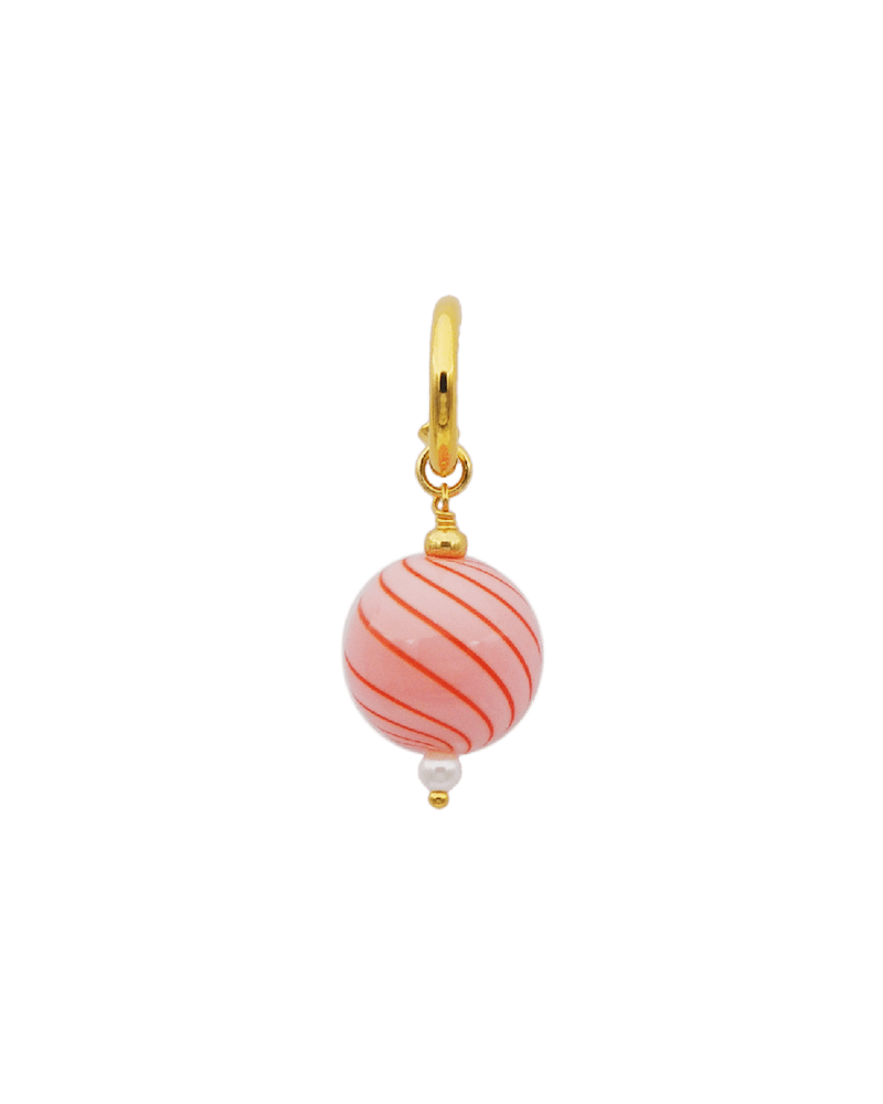 Åben hoop i 18 karat forgyldt sterling sølv, med bolsjeperle i glas og perlemorsperle.