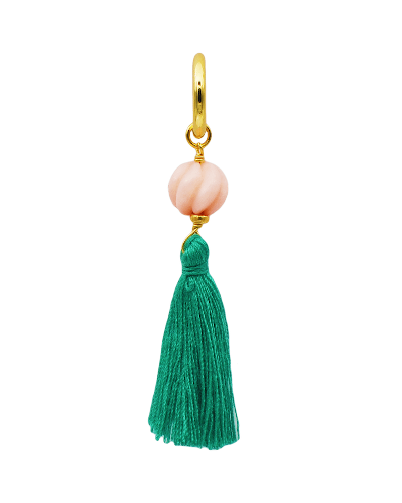 Ørering med rosa perle i elegant snoet design, og smuk grøn kvast.